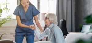 A trained carer provides safe, compassionate care at home.